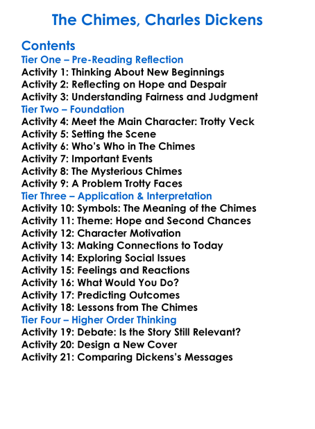 The Chimes Charles Dickens Worksheet Activity Booklet