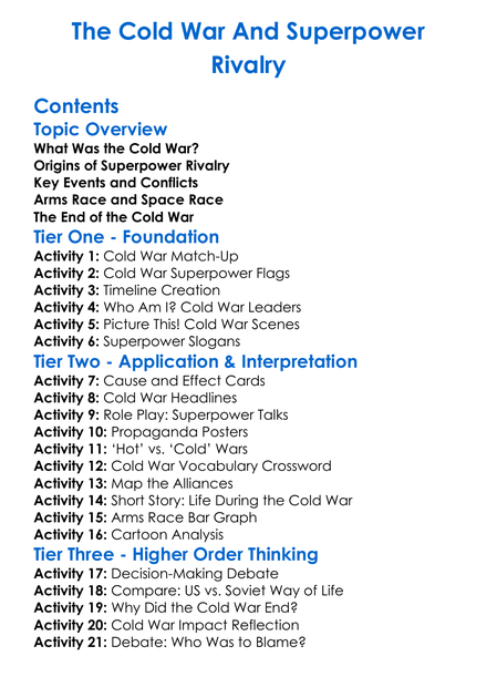 The Cold War And Superpower Rivalry Worksheet Activity Booklet