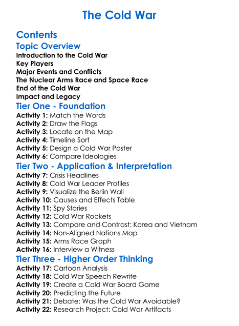 The Cold War Worksheet Activity Booklet