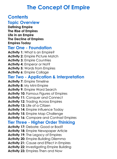 The Concept Of Empire Worksheet Activity Booklet