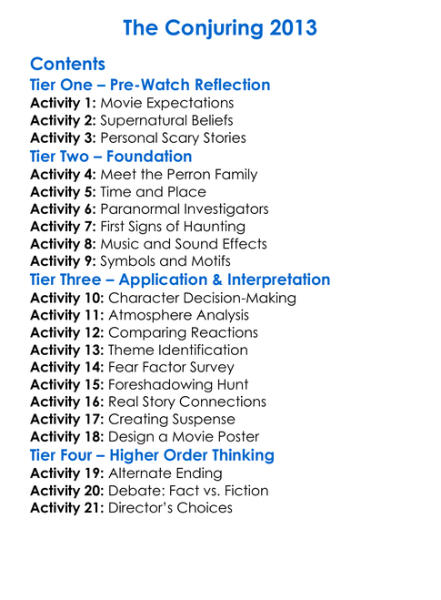 The Conjuring 2013 Worksheet Activity Booklet