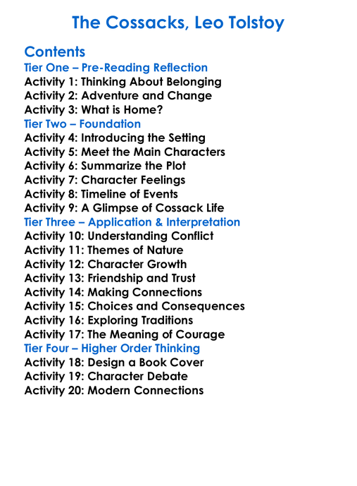 The Cossacks Leo Tolstoy Worksheet Activity Booklet