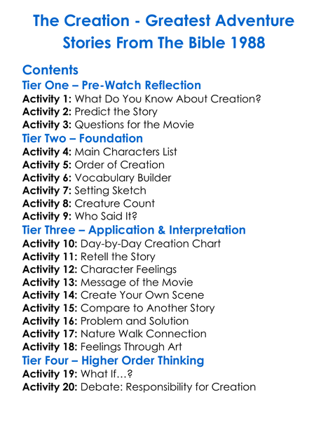 The Creation Worksheet Activity Booklet