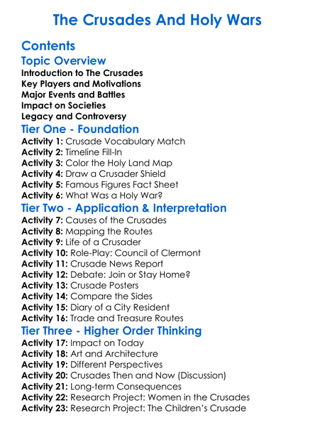 The Crusades And Holy Wars Worksheet Activity Booklet