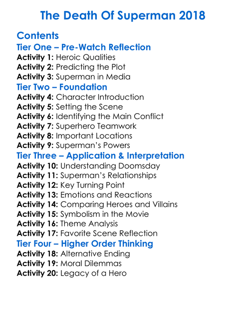 The Death Of Superman 2018 Worksheet Activity Booklet