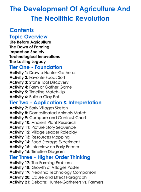 The Development Of Agriculture And The Neolithic Revolution Worksheet Activity Booklet