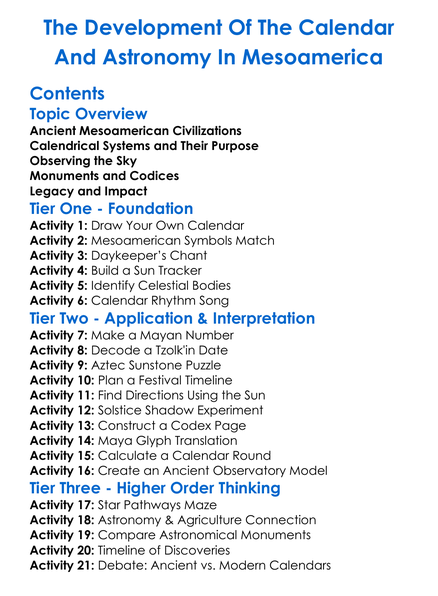 The Development Of The Calendar And Astronomy In Mesoamerica Worksheet Activity Booklet