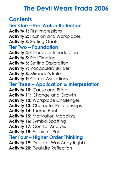 The Devil Wears Prada 2006 Worksheet Activity Booklet