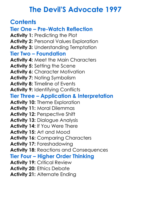 The Devils Advocate 1997 Worksheet Activity Booklet