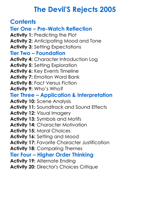 The Devils Rejects 2005 Worksheet Activity Booklet