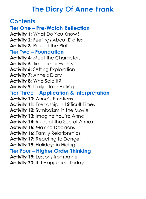 The Diary Of Anne Frank Worksheet Activity Booklet