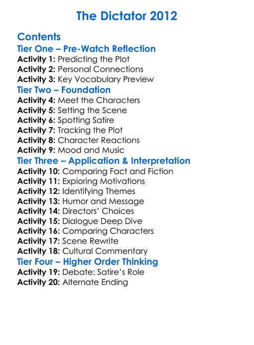 The Dictator 2012 Worksheet Activity Booklet