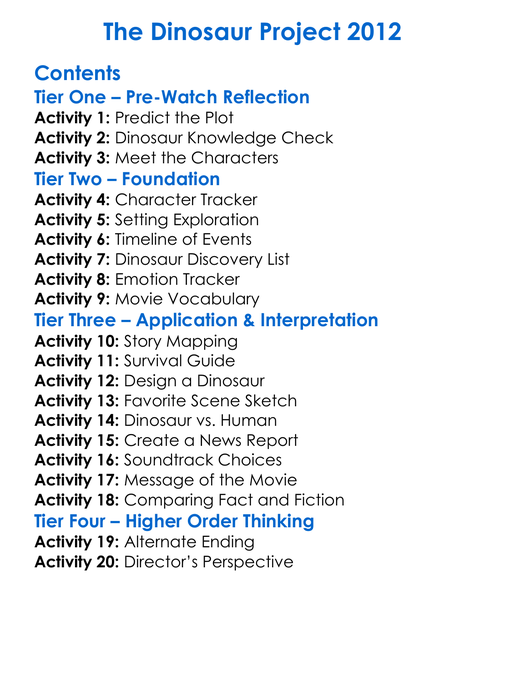 The Dinosaur Project 2012 Worksheet Activity Booklet