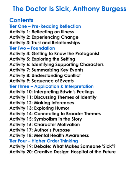 The Doctor Is Sick Anthony Burgess Worksheet Activity Booklet