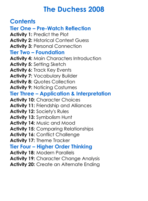 The Duchess 2008 Worksheet Activity Booklet