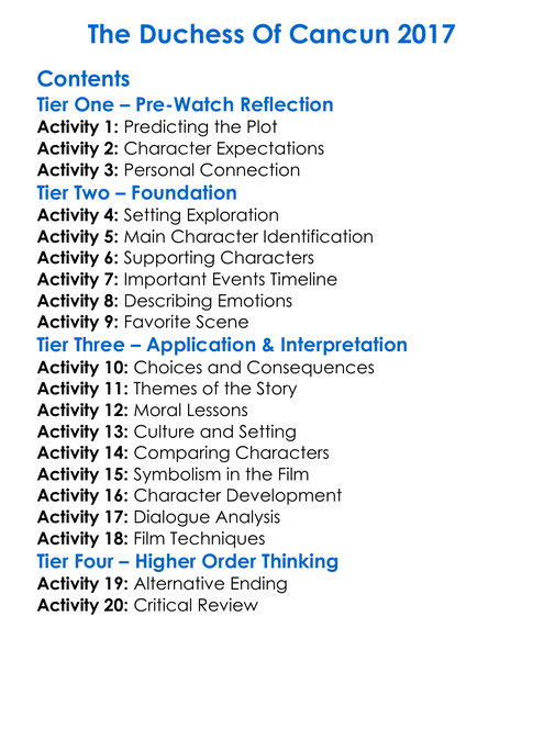 The Duchess Of Cancun 2017 Worksheet Activity Booklet