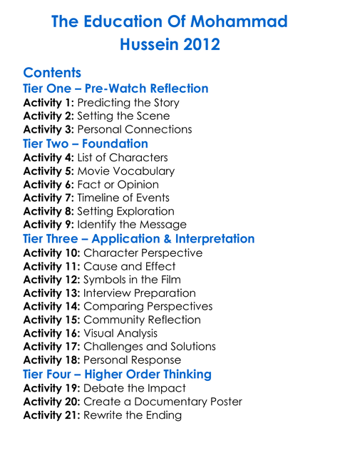 The Education Of Mohammad Hussein 2012 Worksheet Activity Booklet