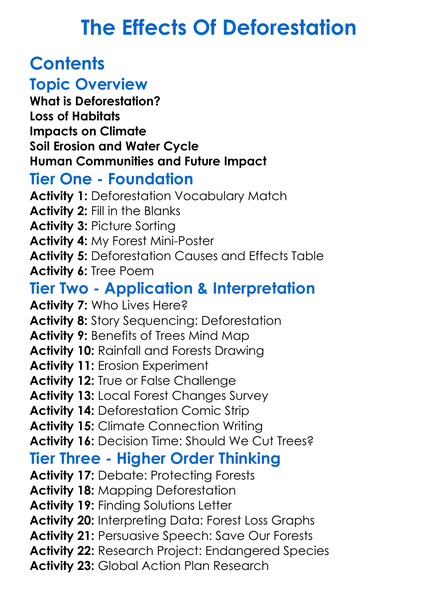 The Effects Of Deforestation Worksheet Activity Booklet