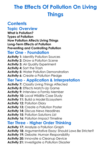 The Effects Of Pollution On Living Things Worksheet Activity Booklet