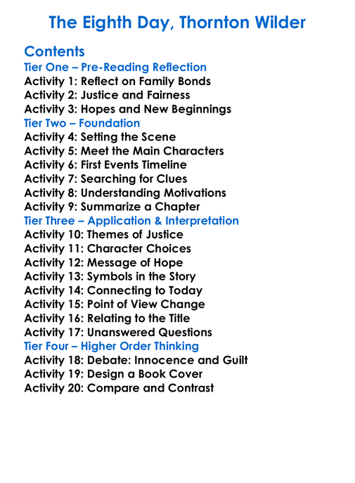 The Eighth Day Thornton Wilder Worksheet Activity Booklet