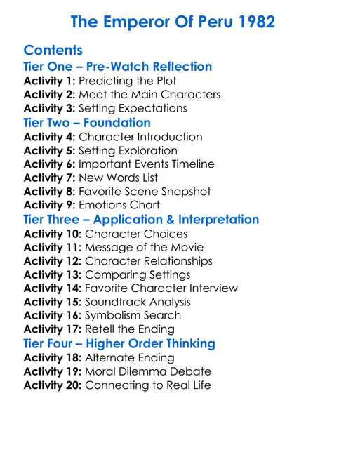 The Emperor Of Peru 1982 Worksheet Activity Booklet