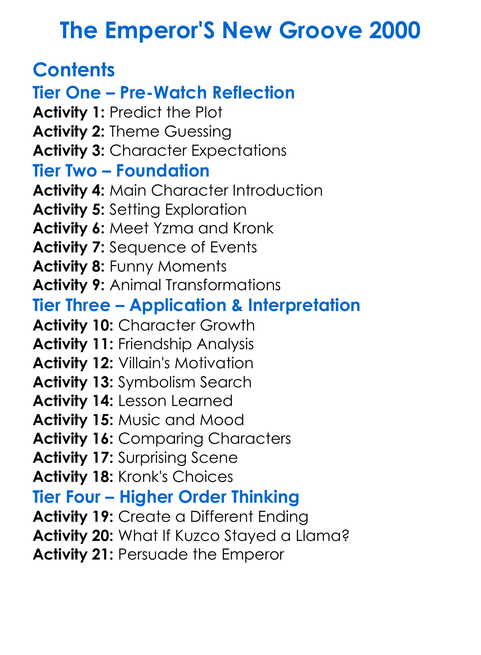 The Emperors New Groove 2000 Worksheet Activity Booklet