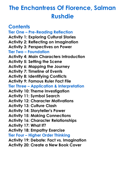 The Enchantress Of Florence Salman Rushdie Worksheet Activity Booklet