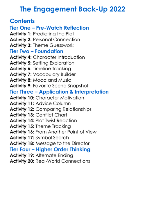 The Engagement Back-Up 2022 Worksheet Activity Booklet