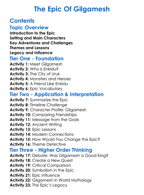 The Epic Of Gilgamesh Worksheet Activity Booklet