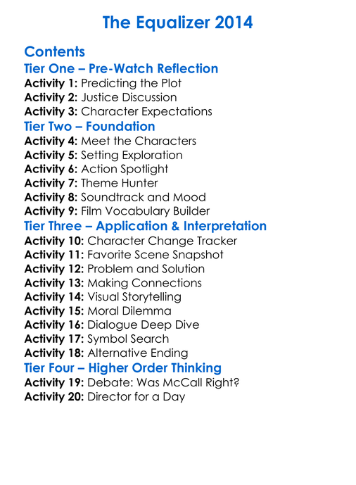 The Equalizer 2014 Worksheet Activity Booklet