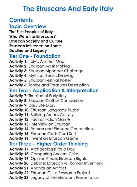 The Etruscans And Early Italy Worksheet Activity Booklet