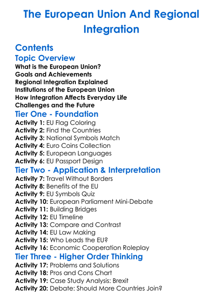 The European Union And Regional Integration Worksheet Activity Booklet