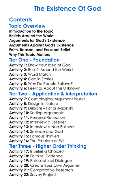The Existence Of God Worksheet Activity Booklet