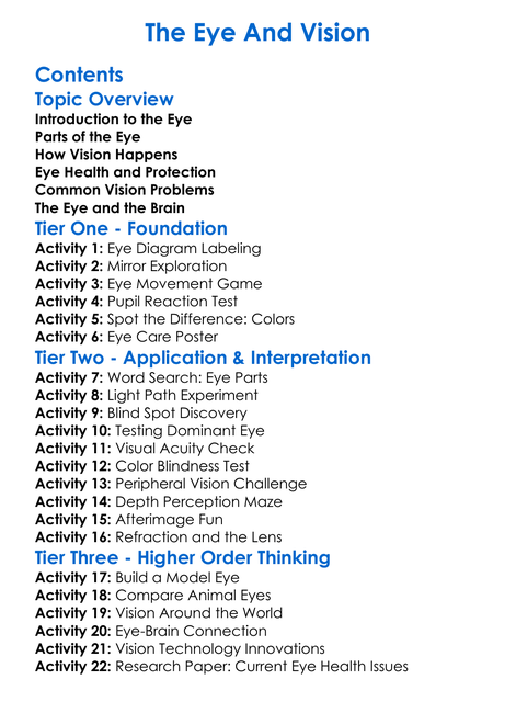 The Eye And Vision Worksheet Activity Booklet