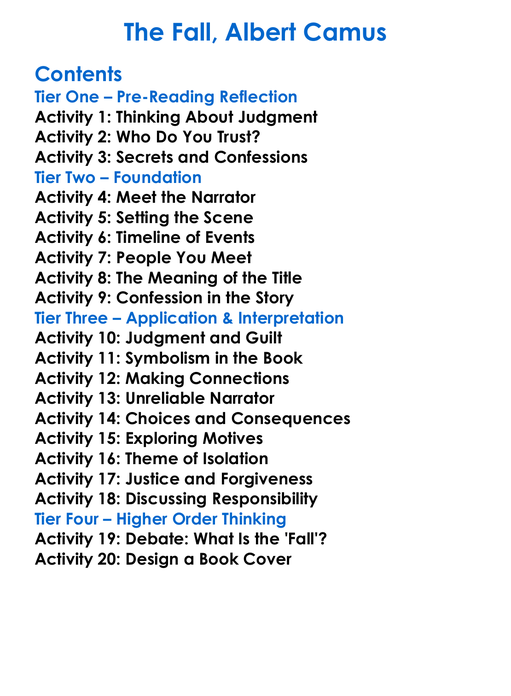 The Fall Albert Camus Worksheet Activity Booklet
