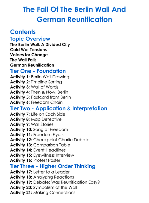 The Fall Of The Berlin Wall And German Reunification Worksheet Activity Booklet