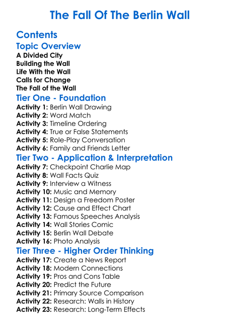 The Fall Of The Berlin Wall Worksheet Activity Booklet