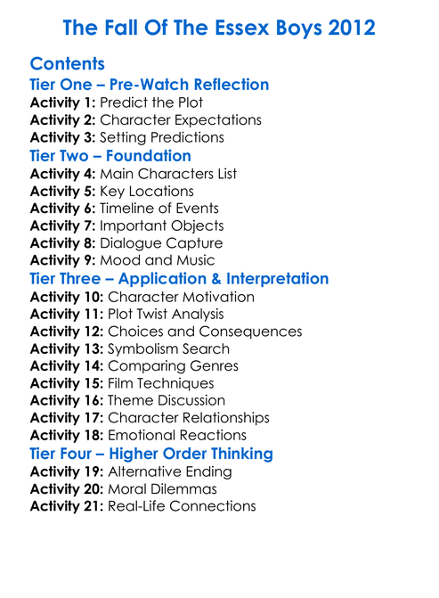 The Fall Of The Essex Boys 2012 Worksheet Activity Booklet