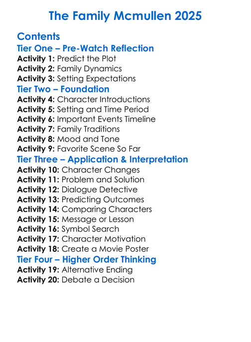 The Family Mcmullen 2025 Worksheet Activity Booklet