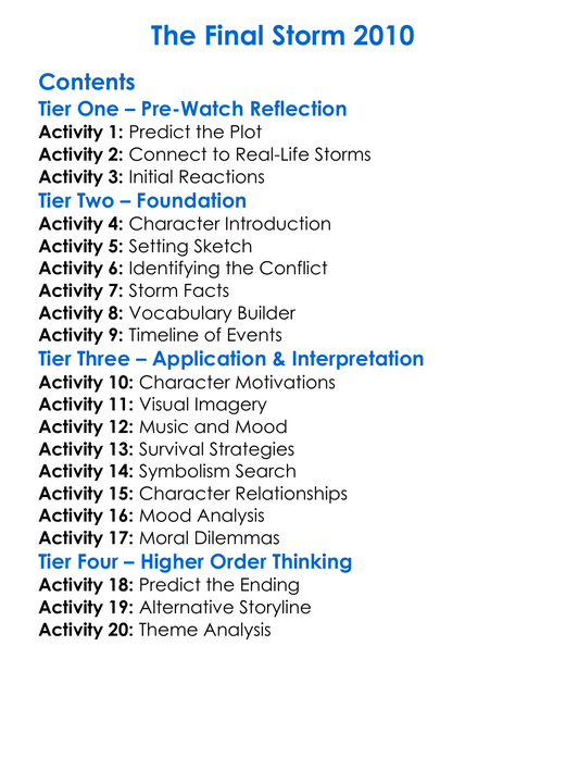 The Final Storm 2010 Worksheet Activity Booklet