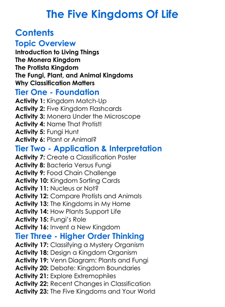 The Five Kingdoms Of Life Worksheet Activity Booklet