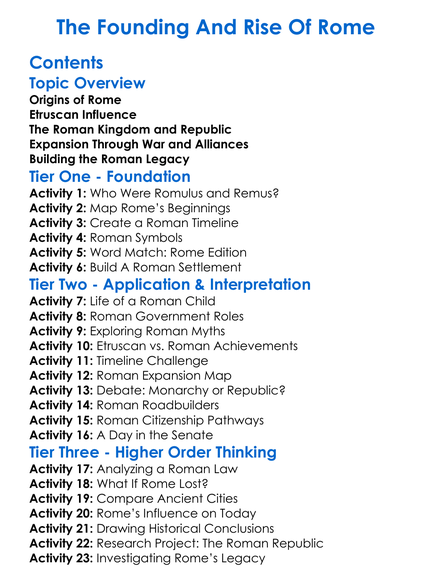 The Founding And Rise Of Rome Worksheet Activity Booklet