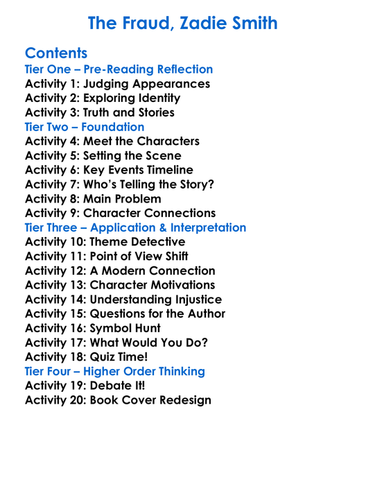 The Fraud Zadie Smith Worksheet Activity Booklet