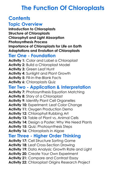 The Function Of Chloroplasts Worksheet Activity Booklet