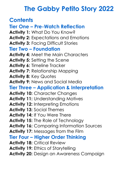The Gabby Petito Story 2022 Worksheet Activity Booklet