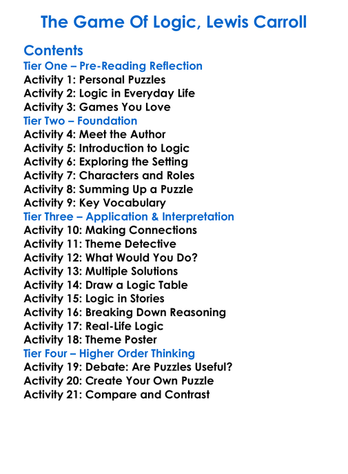 The Game Of Logic Lewis Carroll Worksheet Activity Booklet