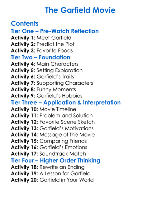 The Garfield Movie Worksheet Activity Booklet