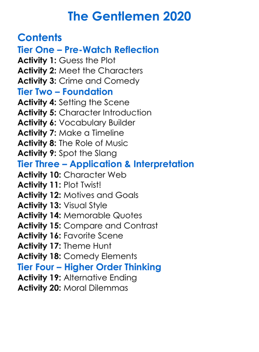 The Gentlemen 2020 Worksheet Activity Booklet
