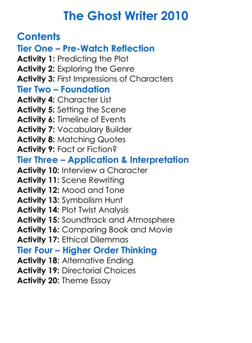 The Ghost Writer 2010 Worksheet Activity Booklet