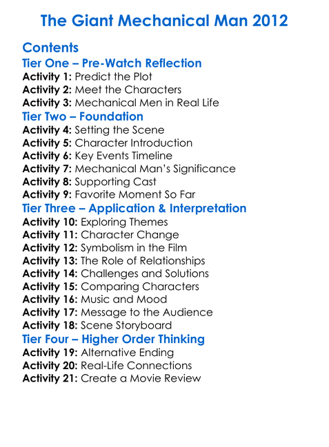 The Giant Mechanical Man 2012 Worksheet Activity Booklet